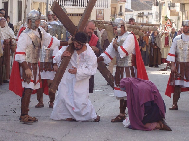 Este año debuto en la representación la caballería de Tiberio y un grupo de esclavas de Poncio Pilatos.Un año más se realizo el recorrido ... de kilometro y medio que es la distancia aproximada que hay entre la Iglesia parroquial del municipio cueveño y la Cueva de Parejo que hace de Gólgota, escenario de la crucifixión. Todo el camino está ambientado con escenas cotidianas de hace siglos, en las que las gentes del lugar ataviados con vestimentas hebreas y romanas, representan además una veintena de escenas de la Pasión, que se inician con desfile del ejército romano, el juicio de Pilatos, la flagelación, la subida al Calvario con las Tres Caídas, la crucifixión, el entierro y resurrección.El director de la Semana Santa de Viviente, Antonio Víctor Martínez, ha manifestado "gran satisfacción porque este año han acudido al municipio "más visitantes que nunca y sobre todo porque la representación ha vuelto a ser un éxito. El esfuerzo de todo el año ha merecido la pena y ya tenemos que pensar en la Semana Santa Viviente del 2013?. Comenta. La representación de la Drama de Pasión de Cuevas del Campo fue declarada en 2004 Fiesta de Interés Turístico de Andalucía y, en 2010, Patrimonio Inmaterial de Andalucía.
