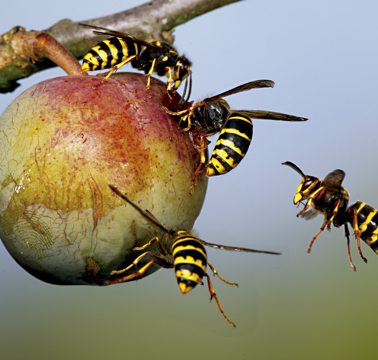 Aún en vuelo, las avispas comenzaron a matar abejas. Sus enormes y aceradas mandíbulas decapitaban a las pequeñas defensoras sin aparente esfuerzo. Aquellos invasores tenían el cuerpo acorazado, bocas como cizallas y un aguijón enorme de seis milímetros cargado de veneno que podían reutilizar cuantas veces quisieran, mientras que las abejas que utilizaban el suyo morían irremediablemente.