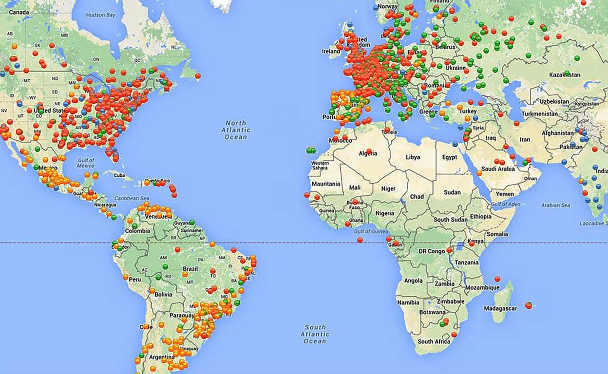 La organización Child Rescue Coalition, con sede en Florida, ha creado una tecnología de rastreo –plasmada en mapas como este– para identificar ordenadores que comparten y descargan imágenes y vídeos de niños sexualmente explícitos. Según esta organización, más de 750.000 pedófilos se mantienen on-line de forma casi constante en el mundo e intercambian material, retransmiten abusos en directo, extorsionan a niños para producir pornografía infantil o están en proceso de hacerlo. La Policía de 97 países usa esta herramienta, que ha contribuido al arresto de más de 14.000 pedófilos, al rescate de más de 3300 niños y a prevenir cerca de 720.000 casos de abuso a menores.