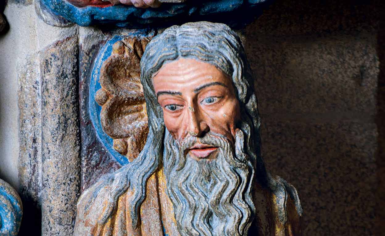 Ya no saluda el pórtico al visitante de la plaza del Obradoiro, pero sigue marcándolo todo; para empezar el nombre de la plaza –'taller, lugar de trabajo'–, remite a los cinceles del maestro Mateo y su cuadrilla.