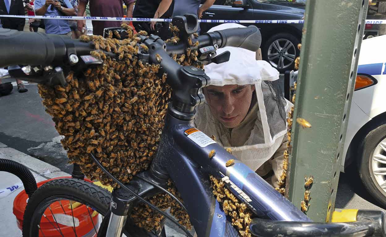 Y es que aun cuando los nuevos apicultores sigan todas las normas, es inevitable que una mayor presencia de abejas en la ciudad haga que estos policías tengan trabajo cada verano: si las colmenas se hacinan, las reinas pueden marcharse en busca de un lugar más acogedor y formar su propio enjambre, como en el caso del manillar de esta bicicleta.