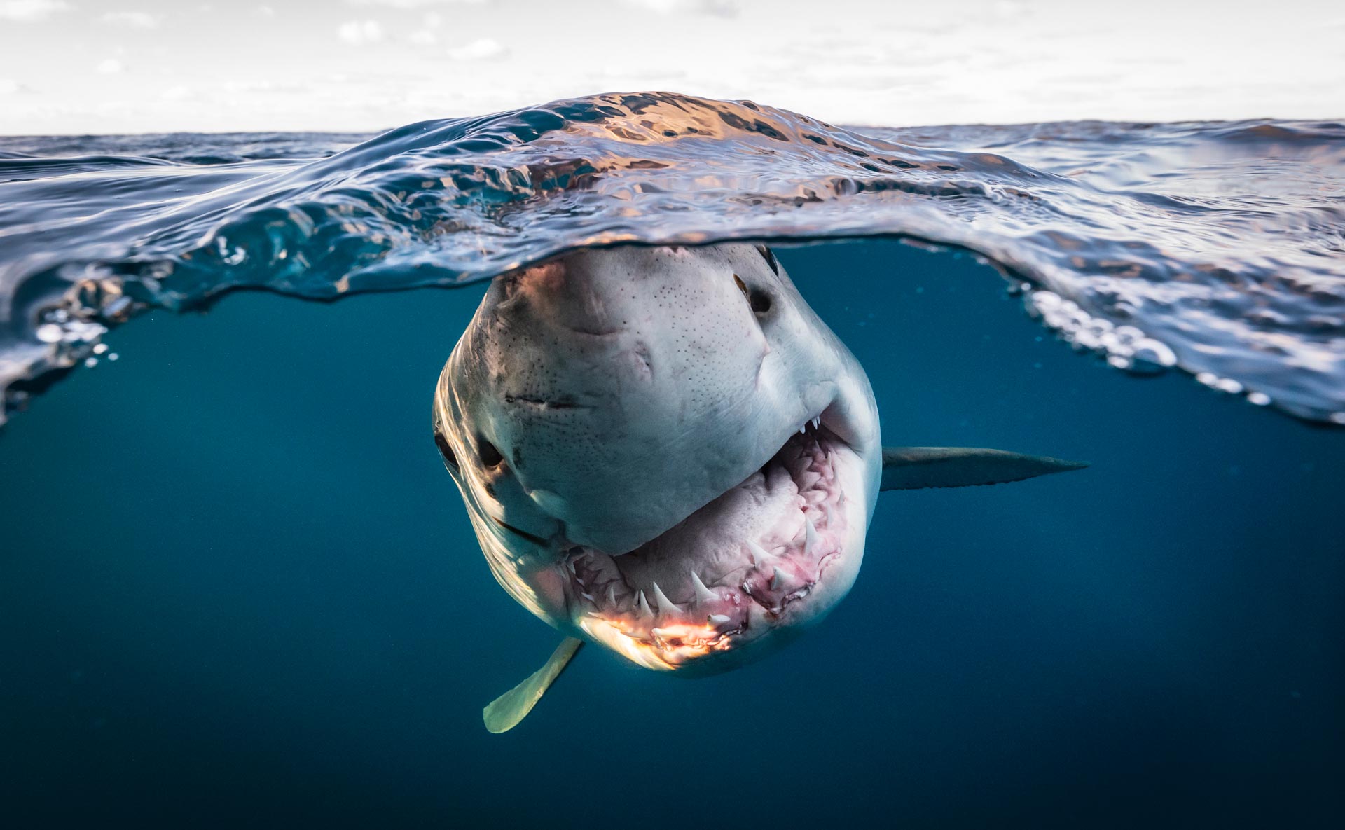 Sí, es un gran tiburón blanco, como los de las películas. Pero el autor de la imagen, Matty Smith, aunque es un curtido fotógrafo submarinista, no está frente al tiburón... Está a una distancia prudente. Lo que está frente al animal es una cámara reforzada con un disparador automático. Pero eso no hace que la foto sea sencilla de conseguir. De hecho, Smith llevaba dos años intentándolo, pero un retrato como este a tan corta distancia exige usar cebo para que el tiburón se acerque, lo cual empeora la calidad de la imagen... o acaba con la cámara en el estómago del animal. Sin embargo, esta vez Smith lo logró y la foto le ha valido uno de los galardones del Ocean Photographer of the Year, uno de los premios más prestigiosos de fotografía submarina.