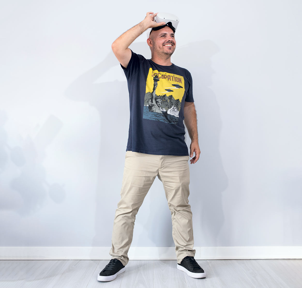 Tener un avatar es muy divertido. Es como disfrazarse en la vida real. Te lo pones un rato y luego no vuelves a la oficina pensando que eres un pirata [se ríe]. Los que dicen que nos va a traer problemas mentales es porque no lo han probado. Nos tratan como si no tuviéramos cerebro. El ser humano sabe diferenciar cosas mucho más complejas que eso. Es verdad que puede haber gente que tenga problemas psicológicos y que se enganchen a la realidad virtual, pero no la población global. Es como cuando se estrenó la película de Superman y salieron anuncios diciéndole a los niños que no se tiraran por la ventana. De momento, y por la trayectoria de la gente que lo lleva utilizando desde que empezó en 2013, todavía nadie ha dicho: «Dejó la realidad porque el metaverso es más chuli que el mundo real» [se ríe]. Y estamos hablando de millones y millones de gafas vendidas. No tiene pinta de que vaya a destruir la humanidad. Cuando yo era pequeño se decía: «Se te va a quedar la cabeza cuadrada de tanto ver la tele».