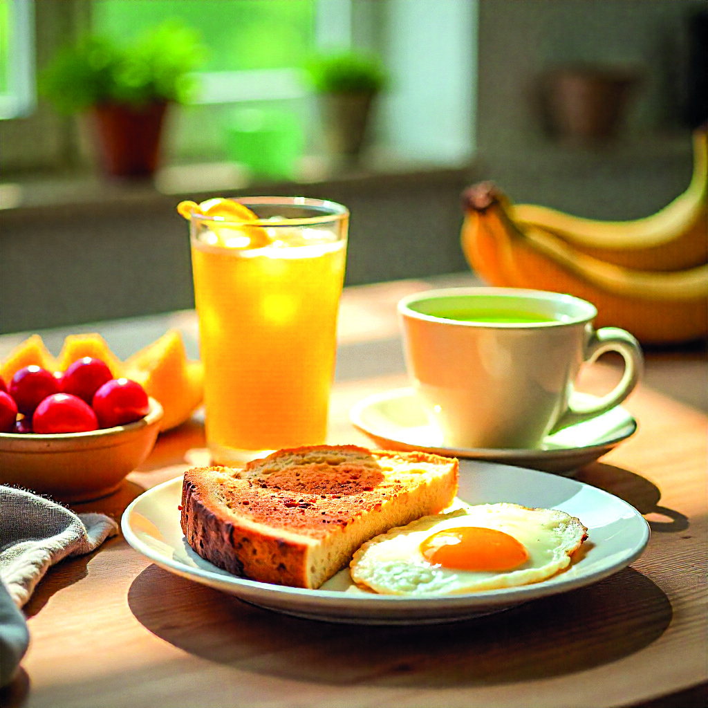 «Zumo de naranja con limón, té verde, tostada de pan de espelta con mantequilla y fruta: picotas, plátano, melón, mango… El domingo, huevo frito».