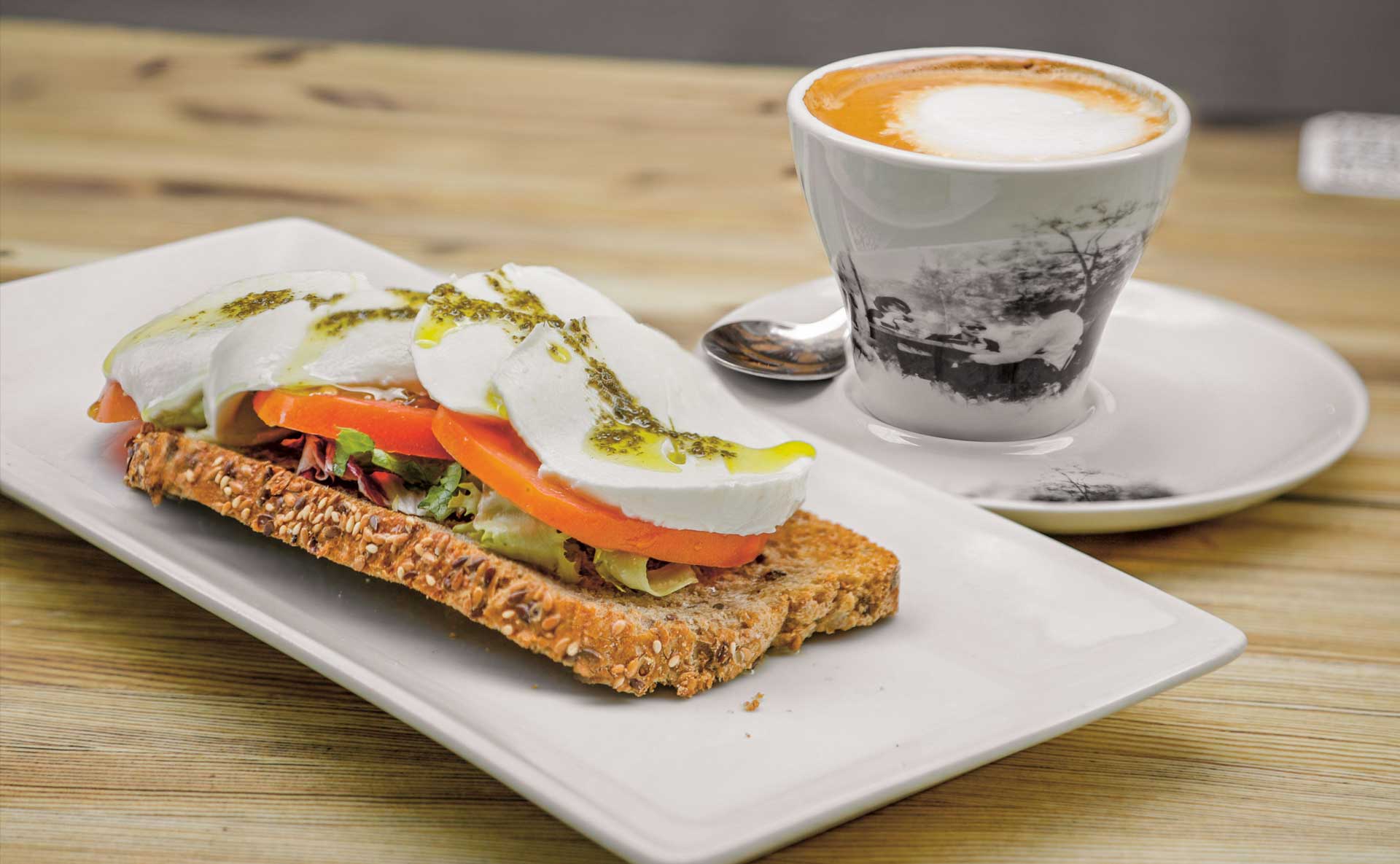 «Un café con leche; y una tostada con paté de oliva, aguacate y tomate, con queso de cabra y, a veces, con una loncha de pavo o jamón ibérico».