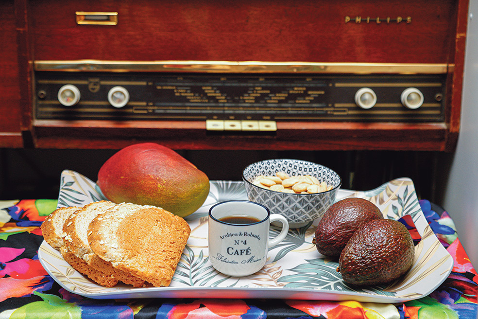 «Tomo un café con leche de avena. Algo de pan de masa madre con aceite de oliva arbequina, aguacate y sal. Fruta y un puñado de frutos secos».