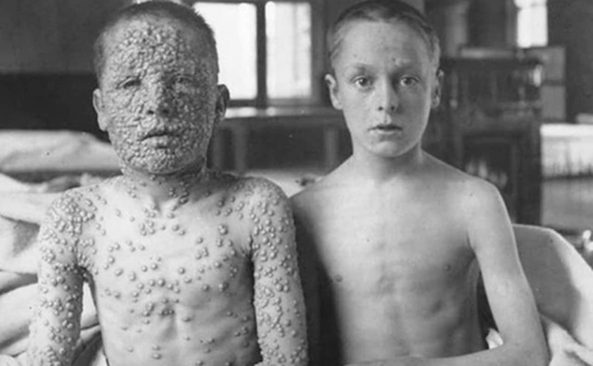 Dos niños de la misma edad, el mismo entorno y que entraron en contacto con el virus de la viruela al mismo tiempo posan en 1900 para el doctor Allan Warner, el médico al frente del Hospital de Aislamiento de Leicester (imagen de apertura). Uno de ellos, previamente vacunado; el otro, sin vacunar. El médico documentó detalladamente los efectos de la vacuna para frenar la viruela, pero todavía faltaban 78 años para lograr erradicar la enfermedad.